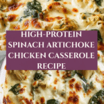 This High-Protein Spinach and Artichoke Chicken Casserole is a hearty and flavorful meal that’s perfect for a comforting dinner. Packed with tender chicken, nutritious spinach, and tangy artichoke hearts, it delivers a satisfying boost of protein with every bite.