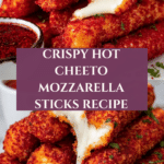 Keywords: Hot Cheeto Mozzarella Sticks, spicy appetizer, crispy cheese sticks, Flamin’ Hot Cheetos, air fryer snack, fried mozzarella sticks, party food, cheesy snacks
