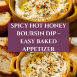 Hot Honey Boursin Dip is a creamy, spicy appetizer that perfectly balances sweet heat with rich, cheesy flavor. It’s easy to prepare and ideal for sharing at gatherings or enjoying as a cozy snack. This dip pairs wonderfully with toasted bread, crackers, or fresh veggies.