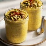 - Serve: In the morning, give each jar a good stir. Top with extra chopped pistachios and a few strands of saffron for garnish. Serve cold and enjoy your flavorful, healthy breakfast.