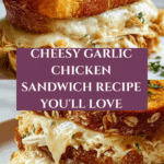This irresistible cheesy chicken garlic bread sandwich combines tender seared chicken breasts, rich garlic butter, and melted mozzarella cheese, all layered between thick slices of crusty French or Italian bread. Baked to golden perfection, it delivers a comforting, flavorful meal perfect for a hearty lunch or dinner.