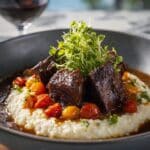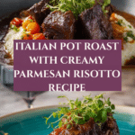 This Italian Pot Roast Parmesan Risotto combines tender, flavorful braised beef chuck roast with creamy, cheesy Arborio rice risotto for a comforting and hearty meal. The beef is slowly braised in red wine, beef broth, diced tomatoes, and Italian herbs, while the risotto is cooked separately with chicken broth and finished with Parmesan cheese and butter, creating a perfect balance of robust and creamy textures.