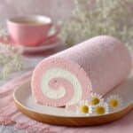 Store the cake roll tightly wrapped in plastic wrap in the refrigerator for up to 2–3 days. For best texture and flavor, enjoy it fresh. This cake is not suitable for freezing as the delicate texture may be compromised. Before serving, you can let it sit at room temperature for 10 to 15 minutes for a softer bite.