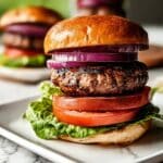 - Step 6: Assemble the burgers by placing the grilled patty on the bottom bun. Top with leafy lettuce, tomato slices, red onion, and your choice of sauces.