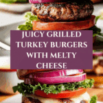 Juicy grilled turkey burgers are a flavorful and healthy alternative to traditional beef burgers. Packed with savory ingredients and melted cheese, they make a perfect meal for a quick weeknight dinner or weekend barbecue.