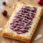 This Leftover Cranberry Sauce Cheese Danish is a delightful way to transform your holiday leftovers into a sweet and flaky treat. Cream cheese and tangy cranberry sauce combine inside buttery puff pastry, finished with a bright orange glaze for a perfect balance of flavors. It’s an easy pastry that’s impressive enough for guests or a cozy breakfast.