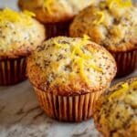 These Lemon Chia Seed Muffins are a delightful treat combining the fresh zestiness of lemon with the wholesome crunch of chia seeds. Perfectly soft and moist, they are sweetened just right and baked to golden perfection, making them an ideal snack or breakfast option.
