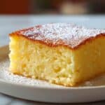 - Slice and Serve: Cut the chilled lemon custard cake into 9 squares. Optionally, dust with powdered sugar before serving for a decorative, sweet finish.