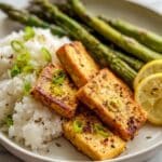 A vibrant and healthy Lemon Pepper Tofu and Asparagus recipe featuring perfectly baked asparagus and golden seared tofu coated in a tangy lemon pepper sauce. This dish combines citrusy brightness, nutritional yeast umami, and a hint of spice for a delicious plant-based meal.