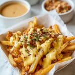 Store any leftover fries and cheese sauce separately in airtight containers in the refrigerator for up to 2 days. Reheat fries in the oven or air fryer to keep them crisp, and warm the cheese sauce gently on the stovetop or microwave before combining again.