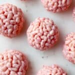 Oiling your hands lightly with butter or cooking spray before shaping the treats will help prevent sticking and make shaping much easier.