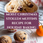 Keywords: Christmas muffins, stollen muffins, holiday baking, fruit muffins, festive muffins, moist holiday muffins, dried fruit muffins