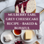 This Mulberry & Earl Grey Cheesecake brings together the rich creaminess of a classic baked cheesecake with the fragrant notes of Earl Grey tea and the sweet-tart burst of mulberries. It’s a delightful dessert that feels both elegant and comforting, perfect for any special occasion or a cozy treat at home.