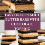 Oreo Peanut Butter Bars combine a crunchy Oreo crust with a creamy peanut butter middle and a rich chocolate topping. These no-bake bars are easy to make and perfect for satisfying your sweet and salty cravings.