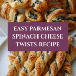 These Parmesan and Spinach Cheese Twists make a deliciously savory appetizer or snack. Crisp, flaky puff pastry wraps a flavorful mixture of fresh spinach and cheeses, baked to golden perfection. They’re quick to prepare and perfect for entertaining or a cozy treat.