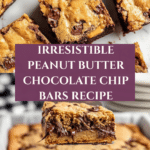 Keywords: Peanut Butter Chocolate Chip Bars, Chocolate Chip Bars, Peanut Butter Bars, Easy Dessert Bars, No-Frosting Bars, Chewy Bars