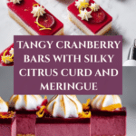 Keywords: cranberry bars, cranberry curd, homemade dessert, meringue topping, holiday dessert, fruit bars