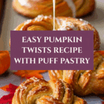 These Pumpkin Twists are a delightful fall treat, combining flaky puff pastry with a spiced pumpkin filling. Topped with a sweet vanilla glaze, they’re perfect for breakfast, snacks, or dessert. Easy to make and impressive to serve, they bring cozy autumn flavors to your table.