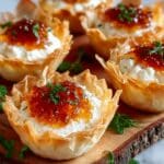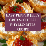 This Quick Pepper Jelly Cream Cheese Appetizer Dip and Bites recipe combines creamy, tangy cream cheese with the sweet and spicy kick of red pepper jelly, nestled inside crispy mini phyllo shells. Perfect for entertaining, these bite-sized treats are easy to prepare and bring a delightful balance of flavors and textures to any appetizer spread.