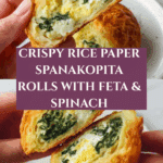 Keywords: Rice Paper Spanakopita, Greek appetizer, spinach and feta rolls, air fryer spanakopita, crispy spanakopita, Mediterranean snack