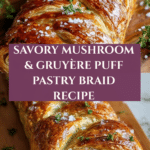 This savory mushroom and Gruyère puff pastry braid is a perfect blend of creamy, cheesy filling wrapped in flaky, golden pastry. It makes an impressive appetizer or a cozy meal that’s easy to prepare and full of comforting flavors.