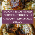 Keywords: smothered chicken thighs, creamy gravy, baked chicken, comfort food, Southern chicken, savory chicken recipe, chicken thighs with gravy