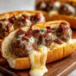 These Sizzling Bourbon BBQ Bacon Cheeseburger Meatballs combine savory ground beef with smoky bacon, melted cheddar cheese, and a tangy bourbon-infused BBQ sauce. Baked to juicy perfection and finished with a glossy BBQ glaze, they make an irresistible appetizer or main dish that’s bursting with bold, smoky flavors and a hint of sweetness.