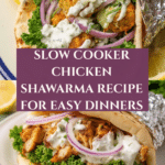 Keywords: slow cooker chicken shawarma, easy chicken shawarma, Greek yogurt chicken shawarma, Middle Eastern chicken recipe, slow cooker chicken thighs