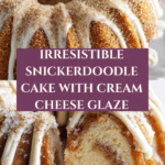 Keywords: Snickerdoodle Cake, Cinnamon Cake, Cream Cheese Glaze, Bundt Cake, Vanilla Cake, Cinnamon Swirl, Easy Dessert