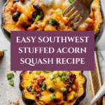 A vibrant and hearty Southwest Stuffed Acorn Squash recipe featuring roasted acorn squash halves filled with a flavorful mixture of black beans, rice, fire-roasted tomatoes, corn, and spices, topped with melted cheese and fresh garnishes. This dish combines sweet roasted squash with spicy, savory fillings perfect for a comforting and nutritious meal.
