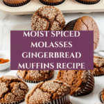 These Spiced Molasses Gingerbread Muffins are a perfect cozy treat bursting with warm spices and rich molasses flavor. Soft, moist, and slightly dense, they combine cinnamon, ginger, and cloves for a festive and comforting taste. Made with a mixture of melted butter, oil, and sour cream, they stay tender and flavorful. Topped with a sprinkle of coarse sugar for a pleasant crunch, these muffins are ideal for holiday breakfasts or an afternoon snack.
