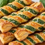 These Spinach & Feta Puff Pastry Twists are a deliciously savory snack or appetizer featuring flaky puff pastry filled with a creamy blend of sautéed spinach, tangy feta, and garlic, seasoned with oregano and black pepper. Perfectly golden and crisp after baking, they’re easy to make and great for entertaining or a flavorful treat any time.