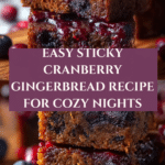 Keywords: Sticky Cranberry Gingerbread, gingerbread recipe, cranberry dessert, molasses cake, holiday dessert, American gingerbread