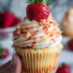 - Frost and Decorate Cupcakes: Spread the cream cheese frosting evenly over the completely cooled cupcakes. Sprinkle the strawberry crunch topping generously on each cupcake, and garnish with fresh sliced strawberries for a vibrant finish.