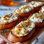 This Sweet and Spicy Whipped Feta Crostini with Hot Honey Magic is a delightful appetizer featuring creamy whipped feta combined with honey and red pepper flakes for a perfect balance of sweetness and heat. Served on toasted baguette slices and drizzled with hot honey, it offers a sophisticated yet easy-to-make starter that’s sure to impress guests.