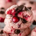 Keywords: Sweet Maraschino Cherry Cookies, cherry cookies, chocolate chip cookies, festive cookies, holiday baking, pink cookies, almond extract cookies