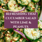 Thai Cucumber Salad is a refreshing and zesty side dish perfect for warm days or as a complement to spicy meals. Crisp cucumbers mixed with tangy lime dressing, peanuts, and fresh herbs create a delightful blend of flavors and textures.