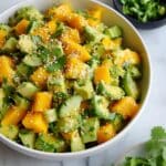 Keywords: Thai mango cucumber salad, mango salad recipe, Thai salad, no-cook salad, fresh mango salad, gluten free salad, easy Thai recipes