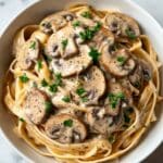 This Vegan Mushroom Stroganoff is a creamy, comforting plant-based twist on the classic Russian dish. It features sautéed mushrooms and onions simmered in a rich sauce made with coconut milk and nutritional yeast, tossed with wide noodles for a hearty and nourishing meal perfect for any occasion.