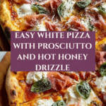 White pizza with prosciutto offers a delicious twist on traditional pizza by skipping the tomato sauce and focusing on creamy ricotta, fresh mozzarella, and savory prosciutto. Finished with a drizzle of hot honey and fresh basil, it’s a perfect balance of flavors that’s quick to prepare and sure to impress.